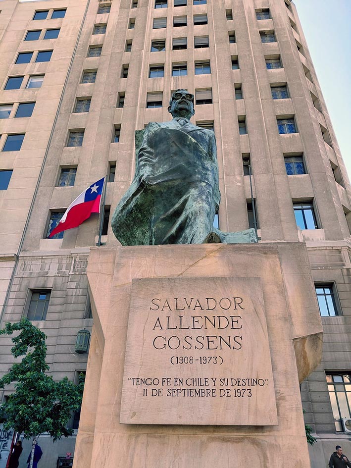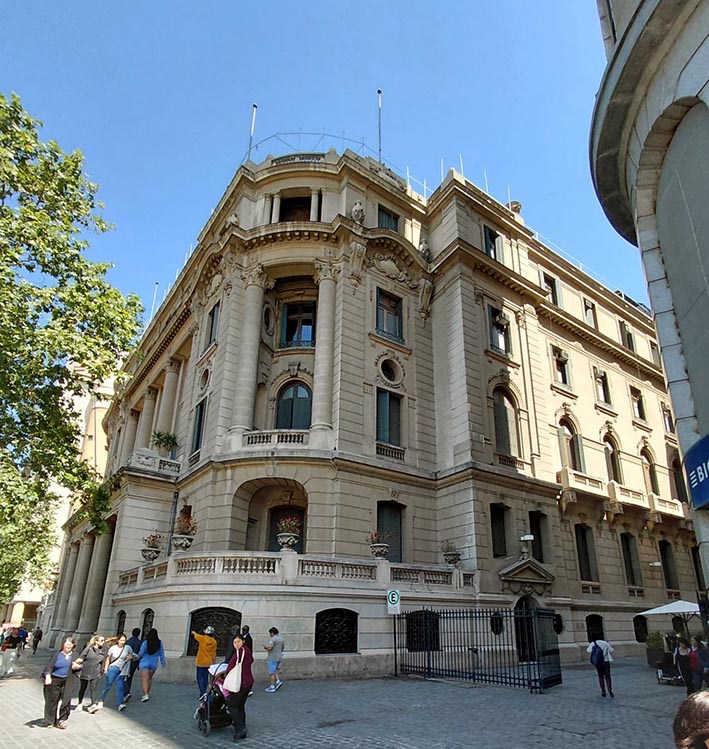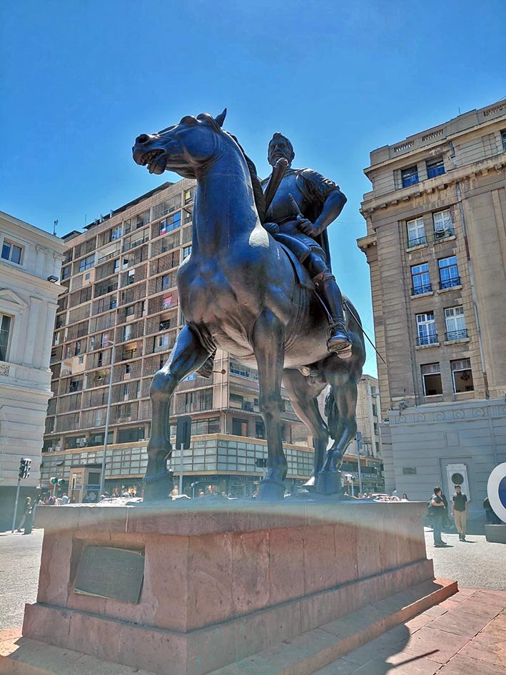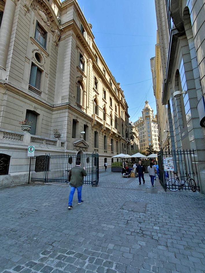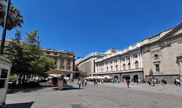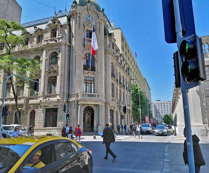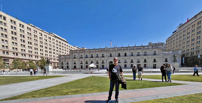 Das 10:30 às 17hs, andando, visitamos a parte externa do Palácio de La Moneda, o ex Congresso Nacional, a sede central da Universidade do Chile e da Universidade Católica, a Praça da Constituição, a Praça de Armas.