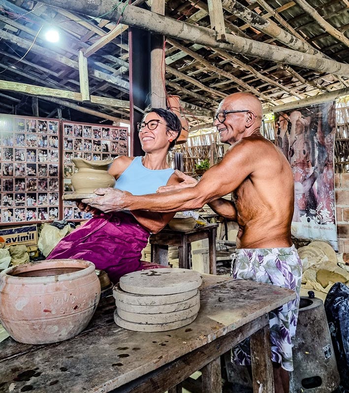 Nesse somatório de aprendizados a oficina na Olaria do Mestre Zé Taurino, articulada por Claudete Mary – Coordenadora de Rancho e Abrigo – foi um dos diferenciais da Etapa Jaguaripe – Maragogipinho’26.