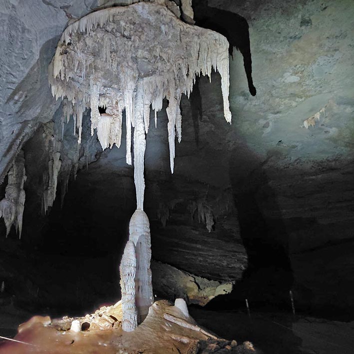 Ela tem 20 quilômetros mapeados, sendo 850 metros abertos à visitação. O maior salão da gruta possui 60 metros de largura e a sua entrada tem 72 metros de altura.